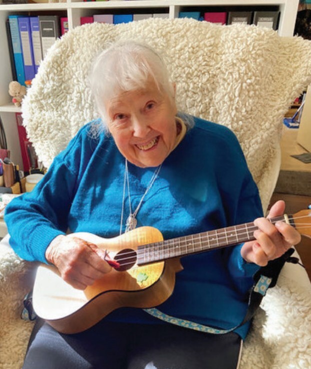 92-year-old Joan Baseby, pictured above and below with her ukulele, has been surrounded by music since childhood. Her father played piano for silent movies, and Joan herself studied piano from the age of seven, achieving her Associate in Music, Australia (AMusA). While she stepped back from classical piano at 19, her love of music never faded. Six years ago, through volunteering at the William Kibby VC Veterans’ Shed, Joan discovered the ukulele. Today she plays regularly with community groups, and her cheerful strumming is a welcome sound in the Glenelg community where she has lived for 16 years.